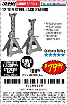 12 TON HEAVY DUTY STEEL JACK STANDS Lot No. 61599/34924 Expired: 11/24/19 - $79.99 Coupon Code: '49705369'