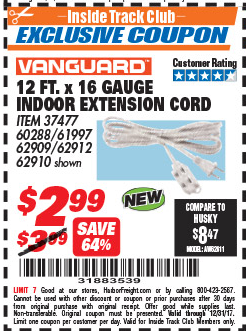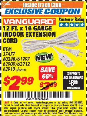 ITC 12 ft. x 16 GAUGE INDOOR EXTENSION CORD Lot No. 60288/61997/37477 Expired: 11/30/17 - $2.99 Coupon Code: '60789546'