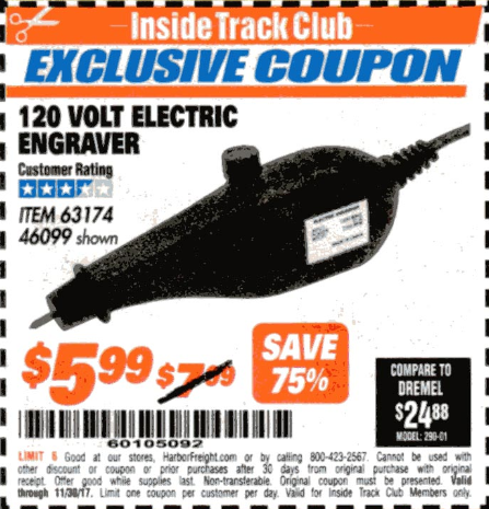 ITC 120 VOLT ELECTRIC ENGRAVER Lot No. 46099/63174 Expired: 11/30/17 - $5.99 Coupon Code: '60105092'