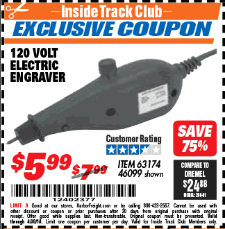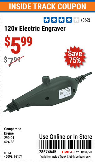 120 VOLT ELECTRIC ENGRAVER Lot No. 46099/63174 Expired: 12/26/22 - $6.99 Coupon Code: '10953151'