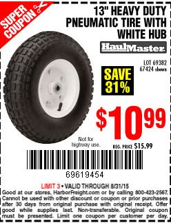 13" PNEUMATIC TIRE WITH WHITE HUB Lot No. 69382/67424 Expired: 8/31/15 - $10.99 Coupon Code: '69619454'