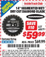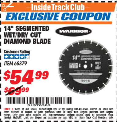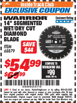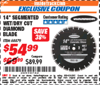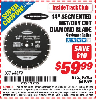 ITC 14" SEGMENTED WET/DRY CUT DIAMOND BLADE Lot No. 68879 Expired: 8/31/15 - $59.99 Coupon Code: '63887275'
