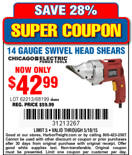14 GAUGE SWIVEL HEAD SHEAR Lot No. 62213/68199 Expired: 5/18/15 - $42.99 Coupon Code: '31213267'