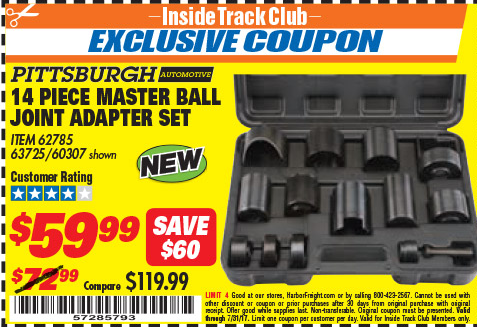 ITC 14 PIECE MASTER BALL JOINT ADAPTER SET Lot No. 62785/63725/60307 Expired: 7/31/17 - $59.99 Coupon Code: '57285793'