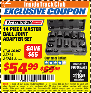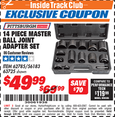 ITC 14 PIECE MASTER BALL JOINT ADAPTER SET Lot No. 62785/63725/60307 Expired: 9/30/20 - $49.99 Coupon Code: 'n/a'