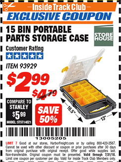 ITC 15 BIN PORTABLE PARTS STORAGE CASE Lot No. 93929 Expired: 7/31/18 - $2.99 Coupon Code: '13005205'