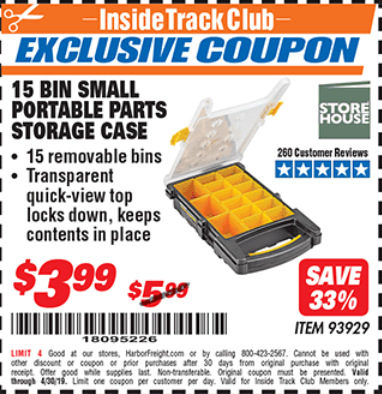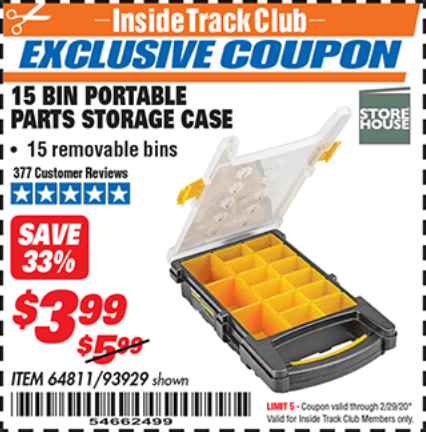ITC 15 BIN PORTABLE PARTS STORAGE CASE Lot No. 93929 Expired: 10/31/19 - $3.99 Coupon Code: '59037479'