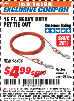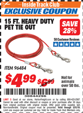 ITC 15 FT. HEAVY DUTY PET TIE OUT Lot No. 96484 Expired: 3/31/19 - $4.99 Coupon Code: '30844296'