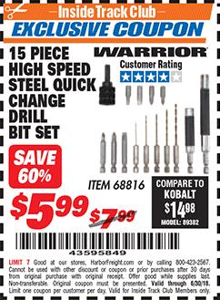 ITC 15 PIECE HIGH SPEED STEEL QUICK CHANGE DRILL BIT SET Lot No. 68816 Expired: 6/30/18 - $5.99 Coupon Code: '43595849'