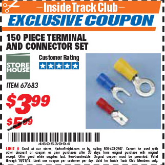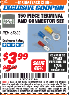 ITC 150 PIECE TERMINAL AND CONNECTOR SET Lot No. 67683 Expired: 10/31/17 - $3.99 Coupon Code: '46053994'