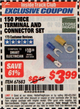 ITC 150 PIECE TERMINAL AND CONNECTOR SET Lot No. 67683 Expired: 7/31/19 - $3.99 Coupon Code: '64026408'