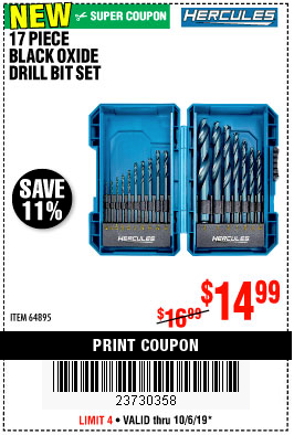 17 PIECE BLACK OXIDE DRILL BIT SET Lot No. 64895 Expired: 10/6/19 - $14.99 Coupon Code: '23730358'