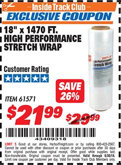 ITC 18" 1470 FT. HIGH PERFORMANCE STRETCH WRAP Lot No. 61571/94172 Expired: 6/30/18 - $21.99 Coupon Code: '43409318'