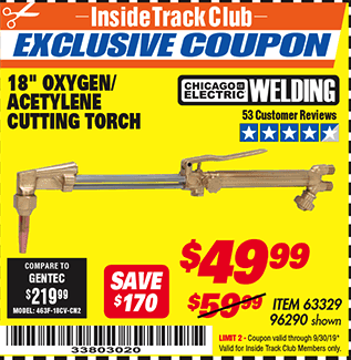 ITC 18" OXYGEN ACETYLENE CUTTING TORCH Lot No. 63329/96290 Expired: 9/30/19 - $49.99 Coupon Code: '33803020'