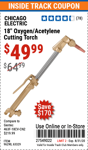 ITC 18" OXYGEN ACETYLENE CUTTING TORCH Lot No. 63329/96290 Expired: 8/31/20 - $49.99 Coupon Code: '27549022'