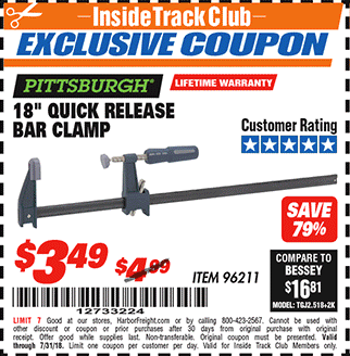 ITC 18" QUICK RELEASE BAR CLAMP Lot No. 96211 Expired: 7/31/18 - $3.49 Coupon Code: '12733224'
