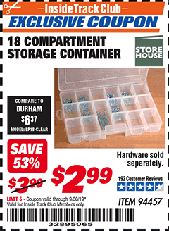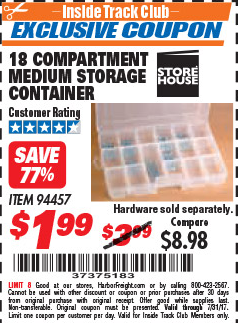 ITC 18 COMPARTMENT MEDIUM STORAGE CONTAINER Lot No. 94457 Expired: 2/29/20 - $2.99 Coupon Code: '54912936'