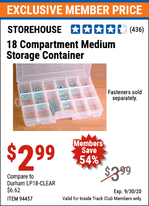 ITC 18 COMPARTMENT MEDIUM STORAGE CONTAINER Lot No. 94457 Expired: 9/30/20 - $2.99 Coupon Code: 'n/a'