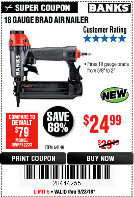18 GAUGE BRAD AIR NAILER Lot No. 64140 Expired: 9/23/18 - $24.99 Coupon Code: '28444255'