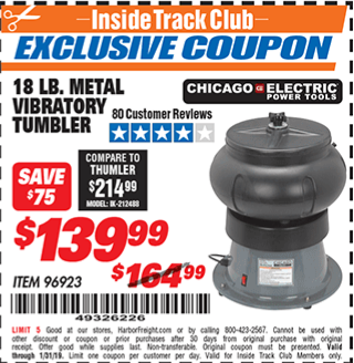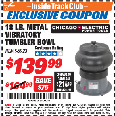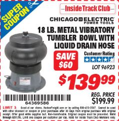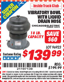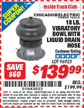 ITC 18 LB. VIBRATORY BOWL WITH LIQUID DRAIN HOSE Lot No. 96923 Expired: 5/31/15 - $139.99 Coupon Code: '21197139'