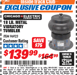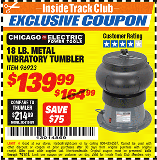 ITC 18 LB. VIBRATORY BOWL WITH LIQUID DRAIN HOSE Lot No. 96923 Expired: 7/31/18 - $139.99 Coupon Code: '13014869'
