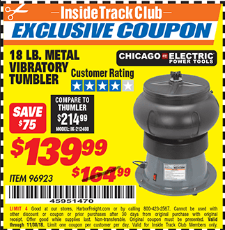 ITC 18 LB. VIBRATORY BOWL WITH LIQUID DRAIN HOSE Lot No. 96923 Expired: 11/30/18 - $139.99 Coupon Code: '45951470'