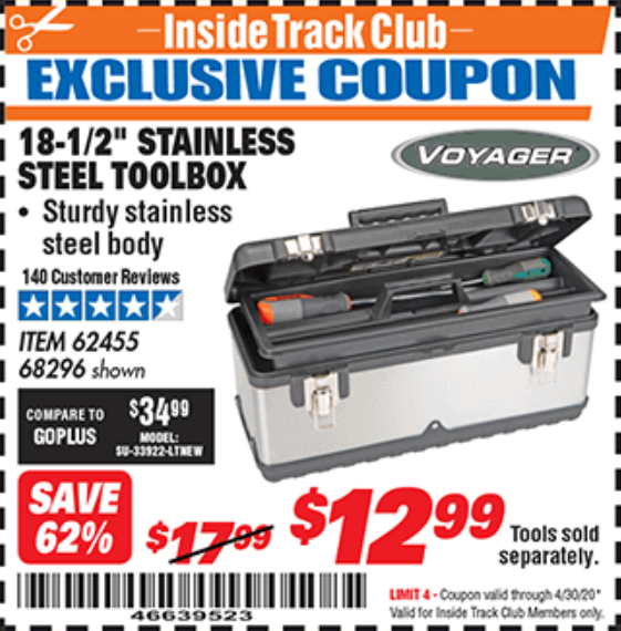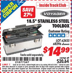 ITC 18.5" STAINLESS STEEL TOOLBOX Lot No. 62455/68296 Expired: 12/31/19 - $12.99 Coupon Code: '15573894'