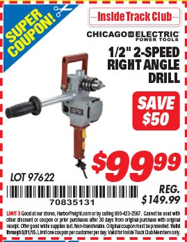 ITC 1/2" 2-SPEED RIGHT ANGLE DRILL Lot No. 97622 Expired: 5/5/15 - $99.99 Coupon Code: '41875904'