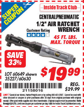 ITC 1/2" AIR RATCHET WRENCH Lot No. 60649/35227/60630 Expired: 5/31/15 - $19.99 Coupon Code: '21158016'