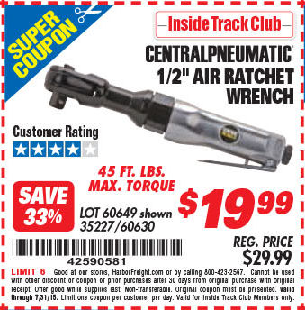 ITC 1/2" AIR RATCHET WRENCH Lot No. 60649/35227/60630 Expired: 7/31/15 - $19.99 Coupon Code: '42590581'