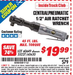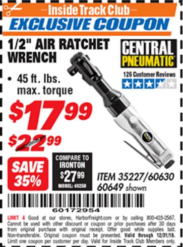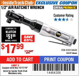 ITC 1/2" AIR RATCHET WRENCH Lot No. 60649/35227/60630 Expired: 12/17/19 - $17.99 Coupon Code: '14464208'