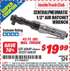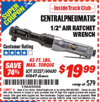 ITC 1/2" AIR RATCHET WRENCH Lot No. 60649/35227/60630 Expired: 10/28/21 - $19.99 Coupon Code: 'n/a'