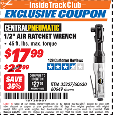 ITC 1/2" AIR RATCHET WRENCH Lot No. 60649/35227/60630 Expired: 2/28/19 - $17.99 Coupon Code: '18739967'