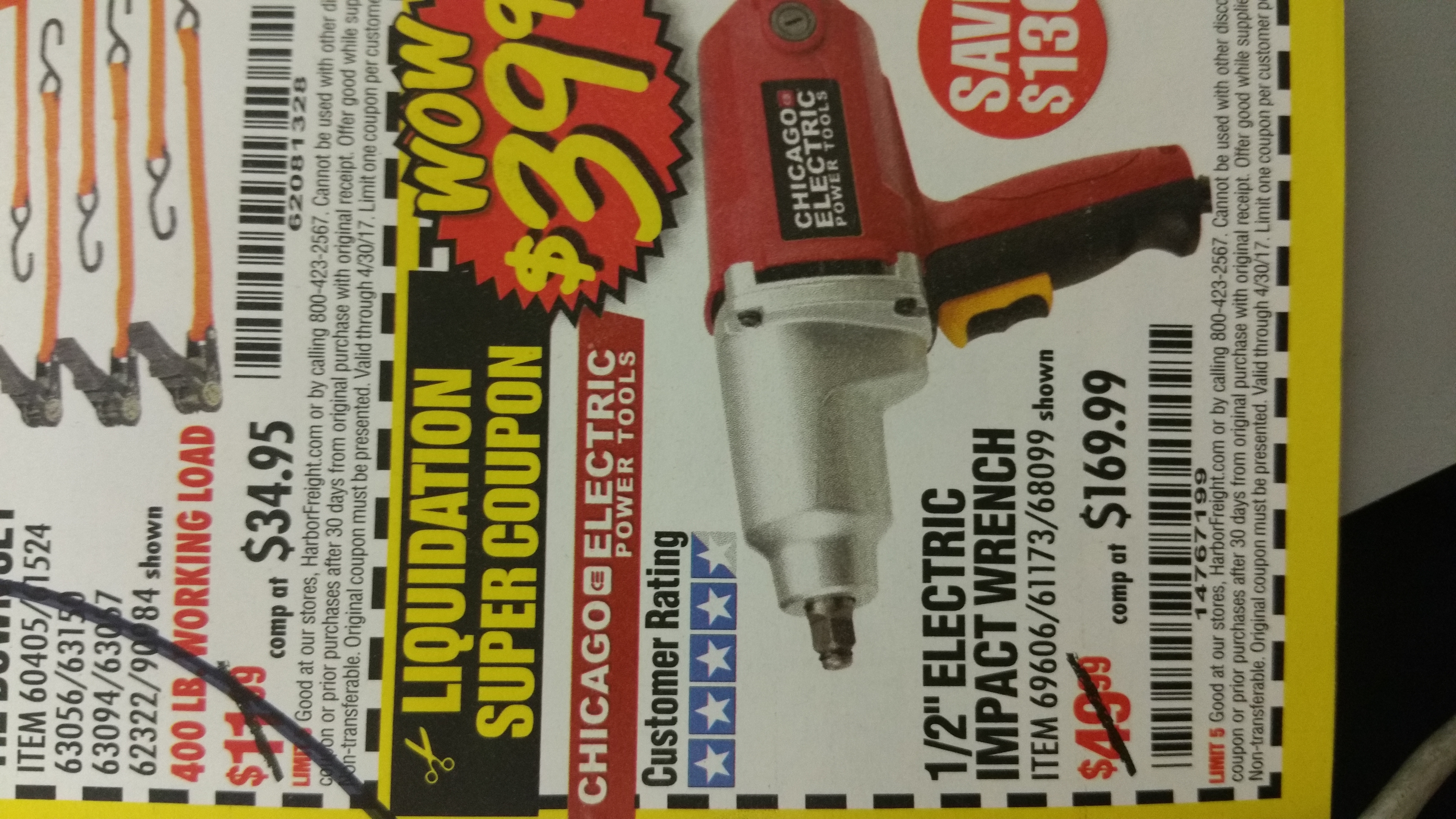 1/2" ELECTRIC IMPACT WRENCH Lot No. 31877/61173/68099/69606 Expired: 4/30/17 - $39.99 Coupon Code: '14767199'