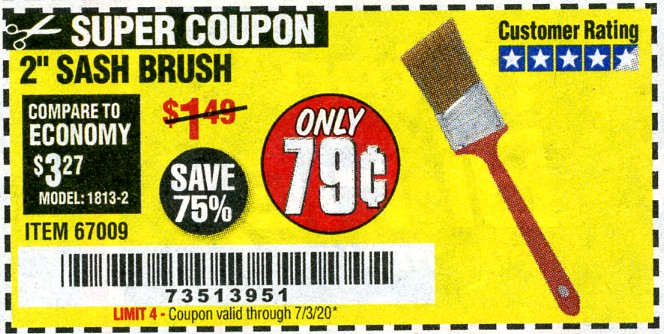 2" SASH BRUSH Lot No. 67009 Expired: 7/3/20 - $0.79 Coupon Code: '73513951'
