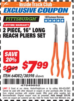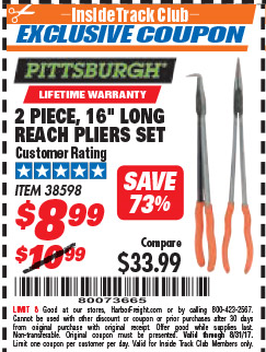 ITC 2 PIECE, 16" LONG REACH PLIERS SET Lot No. 38598/64082 Expired: 8/31/17 - $8.99 Coupon Code: '80073665'