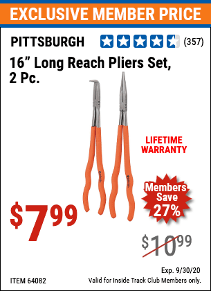 ITC 2 PIECE, 16" LONG REACH PLIERS SET Lot No. 38598/64082 Expired: 9/30/19 - $7.99 Coupon Code: '32369801'