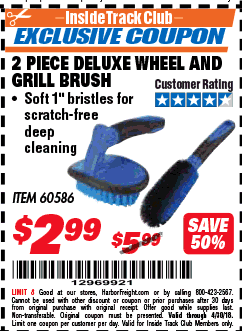 ITC 2 PIECE DELUXE WHEEL AND GRILL BRUSH Lot No. 60586 Expired: 4/30/18 - $2.99 Coupon Code: '12969921'
