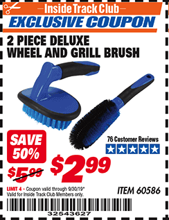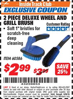 ITC 2 PIECE DELUXE WHEEL AND GRILL BRUSH Lot No. 60586 Expired: 9/30/19 - $2.99 Coupon Code: '32543627'