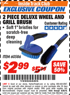 ITC 2 PIECE DELUXE WHEEL AND GRILL BRUSH Lot No. 60586 Expired: 6/30/18 - $2.99 Coupon Code: '42359853'