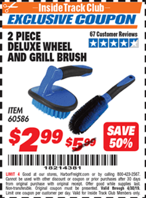 ITC 2 PIECE DELUXE WHEEL AND GRILL BRUSH Lot No. 60586 Expired: 4/30/19 - $2.99 Coupon Code: '18214381'