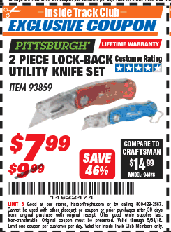 ITC 2 PIECE LOCK-BACK UTILITY KNIFE SET Lot No. 93859 Expired: 5/31/19 - $7.99 Coupon Code: '47309786'