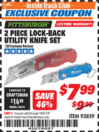 ITC 2 PIECE LOCK-BACK UTILITY KNIFE SET Lot No. 93859 Expired: 10/31/19 - $7.99 Coupon Code: '45276027'