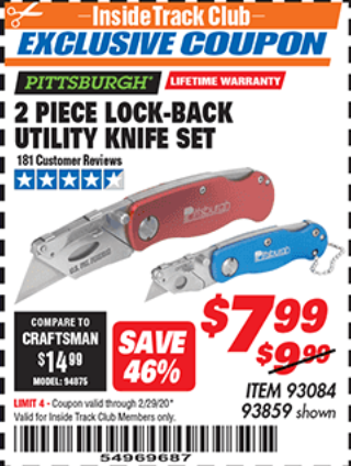 ITC 2 PIECE LOCK-BACK UTILITY KNIFE SET Lot No. 93859 Expired: 2/29/20 - $7.99 Coupon Code: '54969687'