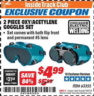 ITC 2 PIECE OXY/ACETYLENE GOGGLES SET Lot No. 63355 Expired: 9/30/19 - $4.99 Coupon Code: '32785323'