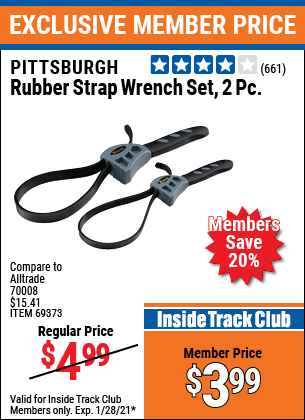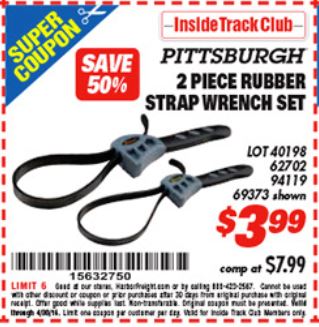 ITC 2 PIECE RUBBER STRAP WRENCH SET Lot No. 69373/94119/40198/62702 Expired: 1/28/21 - $3.99 Coupon Code: 'n/a'