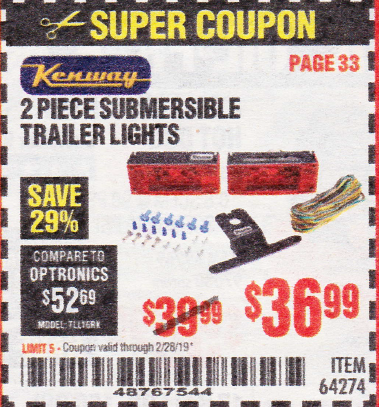 2 PIECE SUBMERSIBLE TRAILER LIGHTS Lot No. 64274 Expired: 2/28/19 - $36.99 Coupon Code: '48767544'