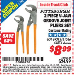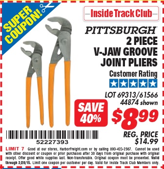 ITC 2 PIECE V-JAW GROOVE JOINT PLIERS Lot No. 69313/61566/44874 Expired: 2/28/15 - $8.99 Coupon Code: '52227393'