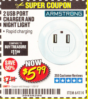 2 USB PORT CHARGER AND NIGHT LIGHT Lot No. 64114 Expired: 11/30/18 - $5.99 Coupon Code: '34675656'