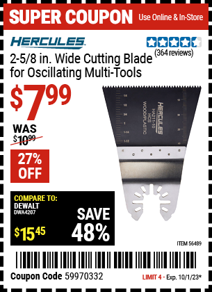 2-5/8 IN. WIDE CUTTING BLADE Lot No. 56489 Expired: 10/1/23 - $7.99 Coupon Code: '59970332'